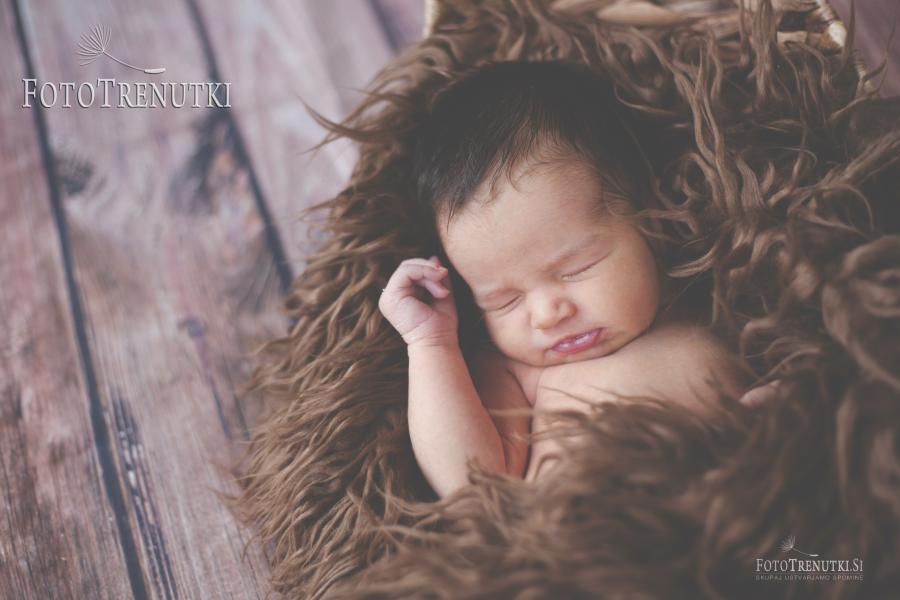 Kdaj se boste odločili za fotografiranje novorojenčka je vaša odločitev. Fotografiranje poteka na vašem domu. Priporočljivo je, da se prve fotografije naredijo že v 9 dneh po rojstvu. Rekvizite, ki jih potrebujemo pri fotografiranju prinesem s seboj (košarice, ozadja, odejice, kapice, trakovi s pentljico, kostumčki, itd.). Naredimo več različnih postavitev dojenčka, rekvizitov in ozadja, ko spi ali zbujenega (odvisno od sodelovanja novorojenčka). Seveda naredimo tudi družinske fotografije, predvsem v črnobeli različici. Tudi sami lahko pripravite rekvizite, za katere bi želeli, da jih uporabimo na fotografiranju. Naredimo tudi tematske fotografije, odvisne od področja ukvarjanja staršev (npr. če je oče gasilec, itd.)